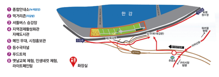 ※ 축제 당일엔 임시 주차장 운영 계획도 있으며, 구리시청 홈페이지를 통해 사전 확인이 가능합니다.
