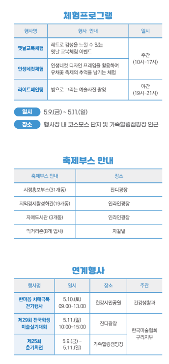 | 체험존 | 4월 19~27일 | 메인광장 옆 | 오전~오후 운영 |