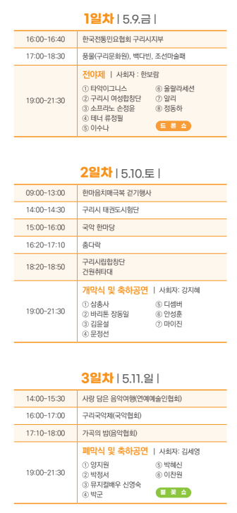 5월 11일 구리유채꽃축제 마지막 날! 축제 하이라이트가 모여있는 날입니다.